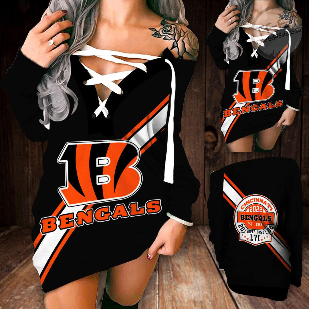 This Cincinnati Bengals Off Shoulder Deep V-Neck Lace Up Long Sleeve Pullover would make a perfect gift for for Cincinnati Bengals fans and lovers.