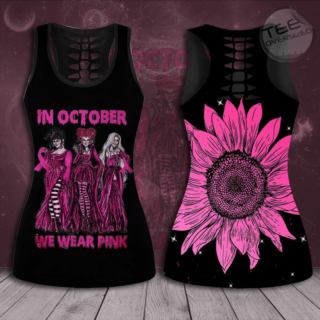 In October We Wear Pink Breast Cancer Awareness 3D Hollow Tank Top Leggings BCAS036